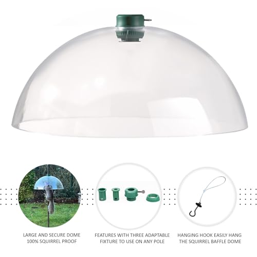 100% SQUIRREL PROOF: Round shape clear dome designed to stop squirrels climbing up poles to your bird feeder and creates a surface they just can’t grip on to the feeder and poles