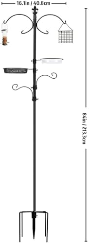 PREMIUM QUALITY BIRD WATER FEEDER: Our bird feeders hanging is rust resistant, sturdy steel pole stands 84 inches tall and 16 inches wide. You can easily adjust our bird feeders hanging station components to any desired location by loosening and tightening wing nuts by hand. No tools required! Forked base prong adds stability and permits easy placement. Just step down to plant. Mesh bath tray and water bowl detach for easy cleaning