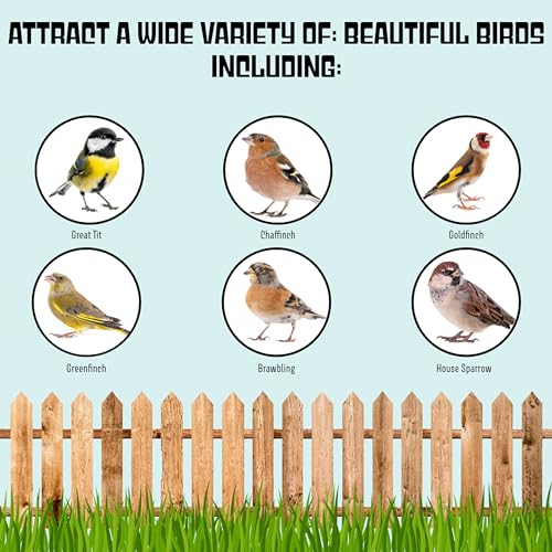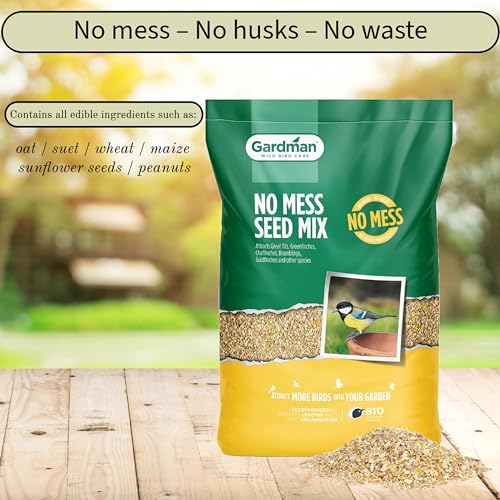 Mixed bird seed for wild birds: 1 x 14.75kg Gardman No Mess Seed Mix, which comes with a unique Topline Thank You Card. Suitable for use in seed feeders, on bird tables and ground feeding.