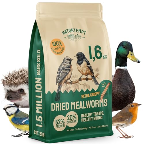 Hatortempt Dried Mealworms – 1.6 Kg Pack – Wild Bird Feed for Wild Birds & Hedgehog Food – Bearded Dragon Food & Protein Supplement