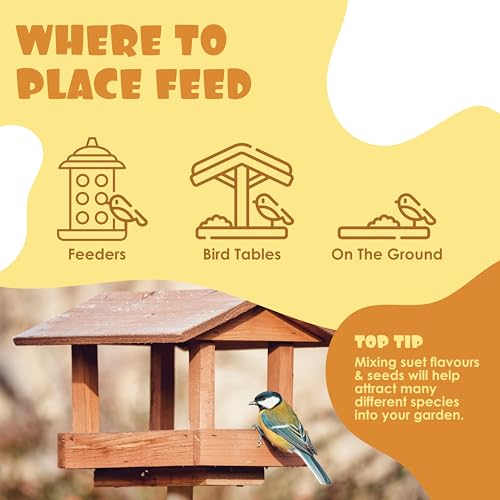 LOVED BY BIRDS – High in energy and rich in protein, these suet pellets are a true favourite among all wild, garden birds. Loved by Robins, Wrens, Tits, Blackbirds, Thrushes, Chaffinches, Goldfinches, Woodpeckers and many more. For best results, place feeders in quiet, private spots such as back gardens or near trees and dense shrubbery where birds feel safe.