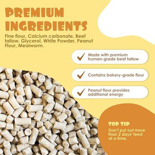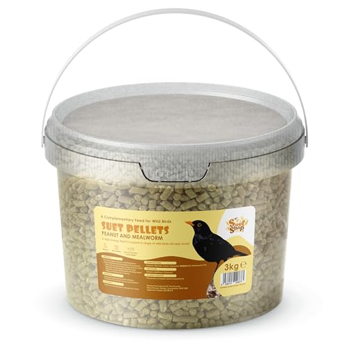 PEANUT & MEALWORM FLAVOUR – Packed with essential nourishment, our Peanut & Mealworm Suet Pellets are rich in energy and protein to keep wild birds healthy, happy, and coming back for more. Ideal for supporting birds throughout the year – especially during colder months or breeding season. Simply place it in a bird feeder, on a bird table, or scatter on the ground. Always ensure freshwater is available. (Flavour: Peanut & Mealworm, Size: 3kg Tub)