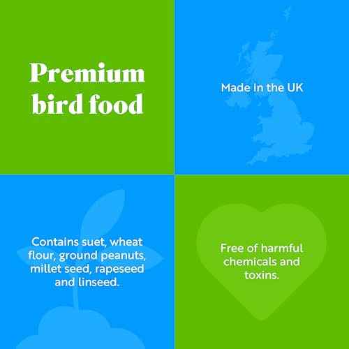 MADE IN THE UK: Wild bird feed with a nutritious blend of suet, wheat flour, ground peanuts, millet seed, rapeseed and linseed. Carefully crafted suet balls that ensure birds get vital nutrients they need.
