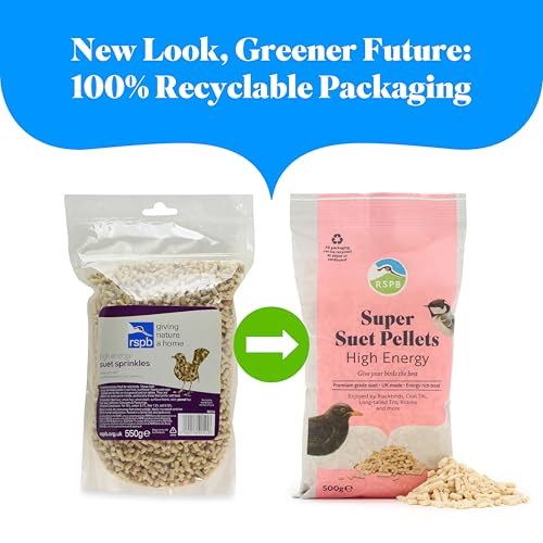 RSPB – Suet Pellets, Wild Bird Food for Small Birds, High Energy Food with Elderberries, Nyjer Seeds, and Sunflower Hearts, Made in the UK, Recyclable Packaging (High Energy) (500g)