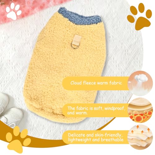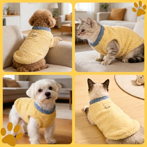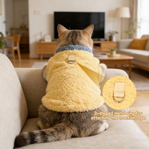 Size M Cat Plush Sweatshirt | Winter Pullover Cat Coat with D-rings for Attaching a Harness | Soft and Warm Clothes Suitable for Small Dogs and Medium-sized Cats (Yellow)