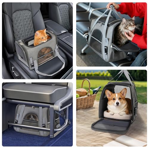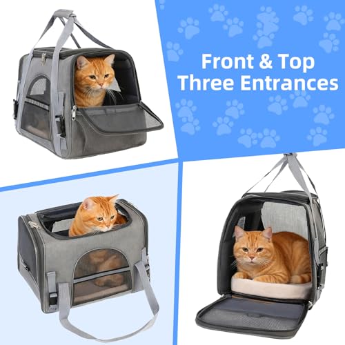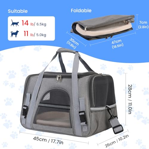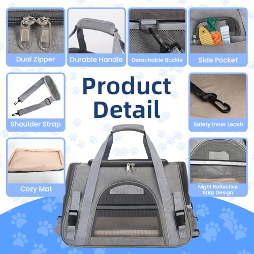 Cat Carrier, Pets Dog Carriers For Travel with Detachable Shoulder Strap & Cozy Mat, 4 Window Mesh Pet Transport Bag for Small-Medium Cats Puppies, Airline Approved- Grey