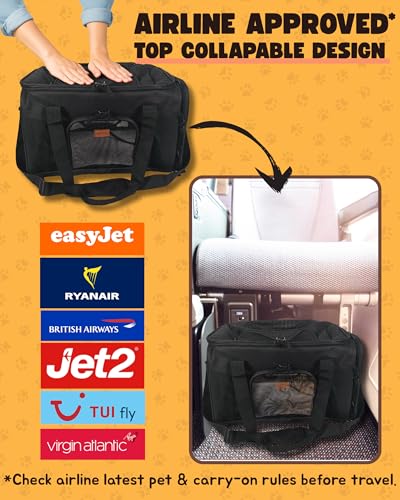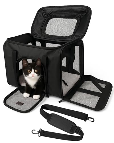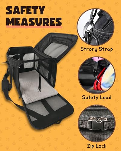 MAYKUN Top Expandable Cat Carrier Bag – Airline Approved Small & Medium Pet Travel Bag with Soft Washable Bed – Mesh Sides, Top & Front Openings – Safety Lead & Lockable Zippers (Medium)