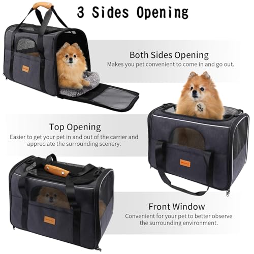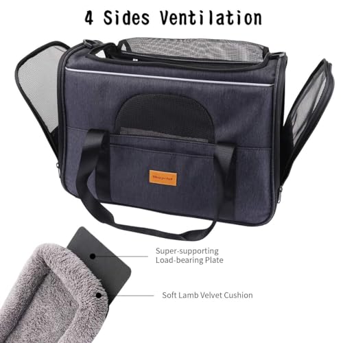 Morpilot Cat Carrier – Airline Approved, Top Opening Portable Dog Bag with Breathable Mesh/Removable Mat, Adjustable Shoulder Strap & Bowl, Foldable Travel Cage, L, Grey (Max 9kg)