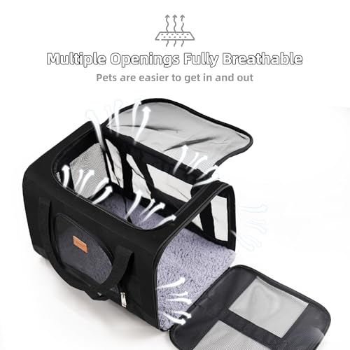 ROYPET Cat Carrier, Portable Pet Carrier Bag for Cats and Small Dogs, Foldable Soft Sided Cat Transport Carrier, Soft-Sided and Scratch-Proof mesh Cat Bag Pet Carriers, Travel Puppy Carrier(Black)