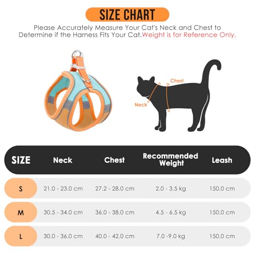 【FIND YOUR BEST FIT】 — The Cat Harness comes in 3 different sizes. Great for Small to large sized cat and small dogs alike, Please accurately measure your cat and refer to the size guide before purchase. Package include: 1x cat harness and 1x lead (150cm)