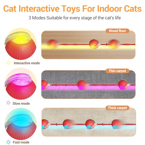 Robust Design Unpredictable Movement:Upgraded threaded tail mount prevents the tail from falling off.This moving ball has a unique texture that can change direction unpredictably unpredictably,allows the ball to run, swing, and slide across the floor or carpet with ease. sparking your cat’s curiosity and keeping them engaged in play for long periods of time.
