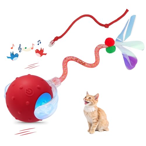 Interactive Cat Toys for Indoor Cats,Chirping Cat Ball Toy with 2 Replaceable Tails,Automatic Cat Toy for Bored Indoor Adult Cats and Kittens,Motion Activated Cat Toys Interactive
