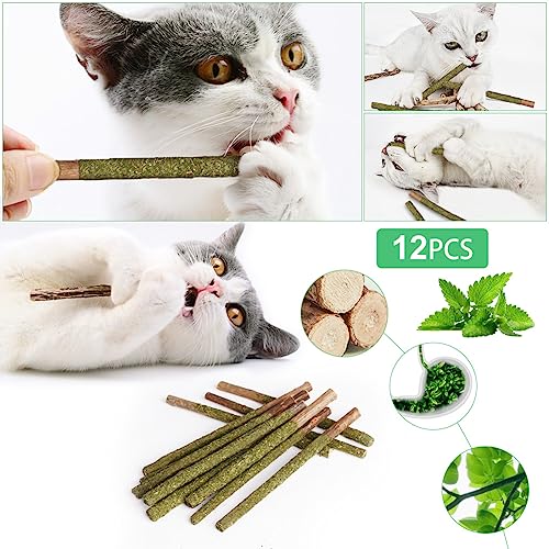 【Natural Catnip Sticks】You will get 12 wooden catnip sticks, which are unprocessed natural organic products without any additives or preservatives added. It can increase appetite, and also help to eliminate the effect of hairballs and toxic substances in the body, which is healthy and safe for your pet.