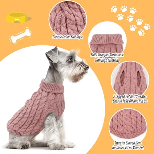 2 Pack Dog Jumpers Knitted Turtleneck, Warm Winter Dachshund Jumper Cute, Apparel Puppy Twist Striped Vest Dog Clothes for Dogs Cats (Beige+Rouge, M)