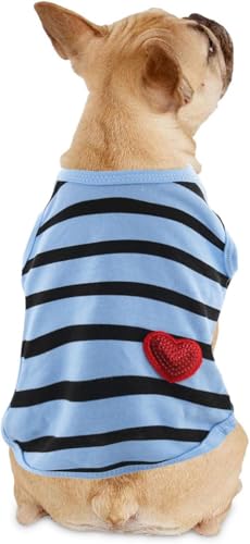 Dog Shirts for Small Dogs Summer Basic T-Shirt Striped Puppy Clothes Sequins Love Heart Sweatshirt Soft Cotton Short Sleeve Tee Shirt Pet Girl Boy Clothing Pullover Chihuahua Apparel, Blue, Medium