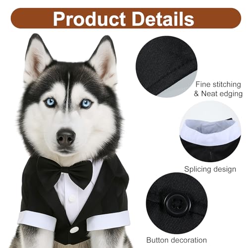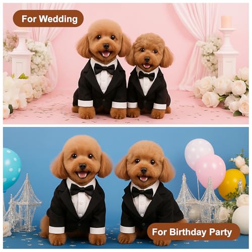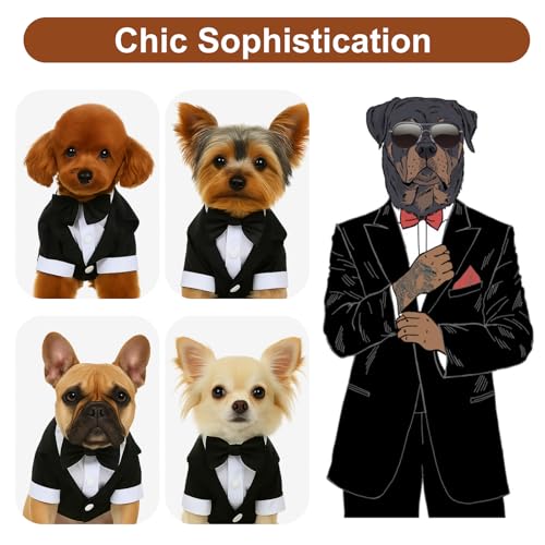 Dog Tuxedo, Dog Tuxedo Suit with Bow Tie, Pet Tuxedos for Small Dogs and Cats, Pet Wedding Attire Dress Up, Doggy Prince Bow Tie Shirt, Doggy Gentleman Apparel for Halloween, Engagement and Christmas