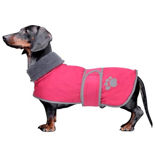 Dog Winter Coat Thermal Quilted Dachshund Coat,with warm flannel Lining,Geyecete waterproof Outdoor Dog Apparel with Adjustable Bands-Pink-L