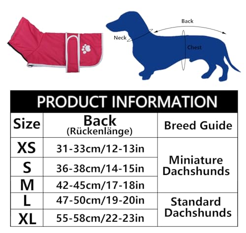 1.Great quality waterproof and windproof dog coat made to a special shape, suitable for Dachshunds and similar breeds.