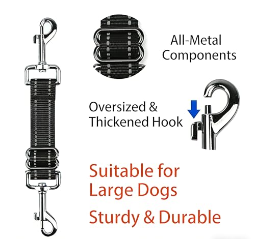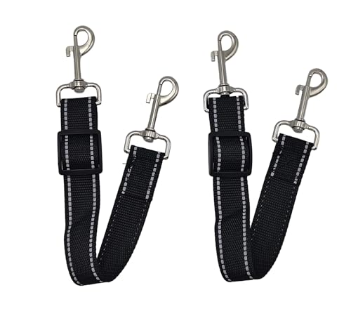 2 Pack Black Dog Collar Clips, Adjustable Nylon Double Ended Safety Connector, 28–37 cm Backup Lead for Dog Collars, Harnesses & Leads