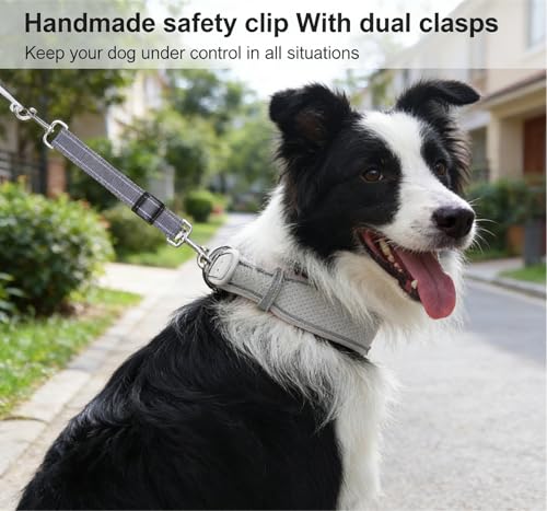 Double Ended Clip Design – Equipped with two secure snap hooks, easily connecting dog collar to harness or lead, reducing the risk of escape.
