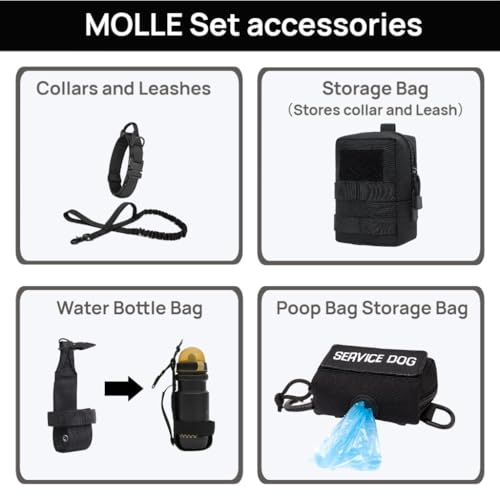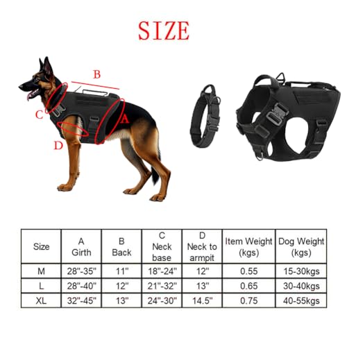Harness for Large Dogs UK, Large Dog Harness Tactical Training Walking Vest with Leash & Collar Set for German Shepherd Malinois All Breeds – Black Full Set-L