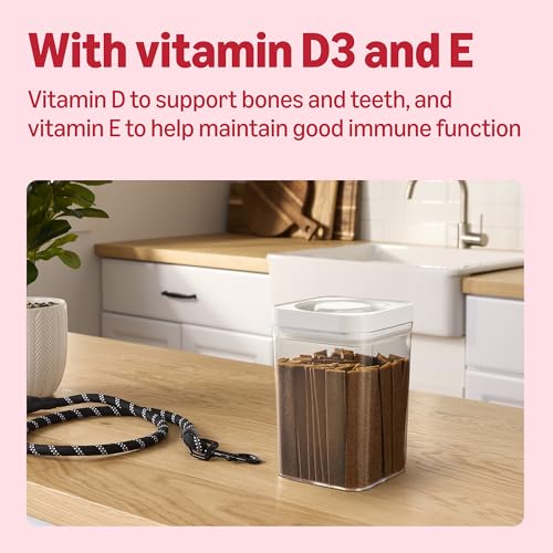 Vitamin D3 to support healthy bones and teeth and Vitamin E to help maintain a good immune function