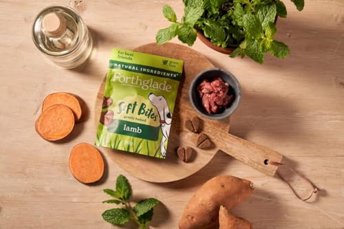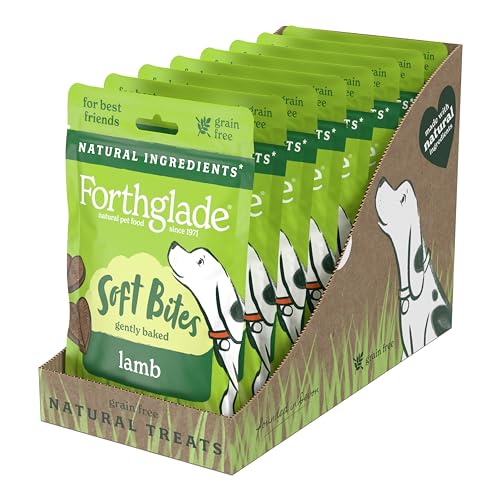 Forthglade Natural Dog Treats (8 x 90g Bags) – Hypoallergenic & Grain Free Dog Treats with Lamb, Hand-Baked Soft Bites, Resealable Bags