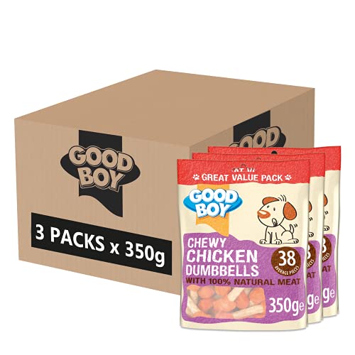 Good Boy – Chewy Chicken Dumbbells – Dog Treats – Made With 100% Natural Chicken Breast Meat – 350 Grams – Low Fat Dog Treats (Case of 3)