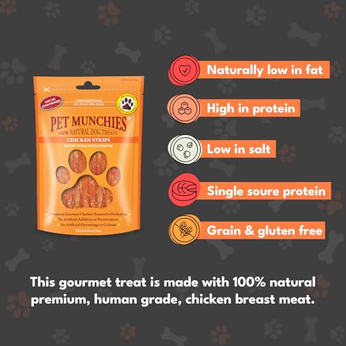 Pet Munchies Chicken Strips Dog Treats, Premium Dog Chews with Natural Real Meat, Low in Fat and High in Protein 90g