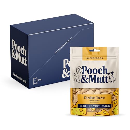 Pooch & Mutt – Cheddar Cheese Meaty Treats, Dog Treats Grain Free, Digestive Friendly and Vegan, Pack of 7x120g (packaging may vary)