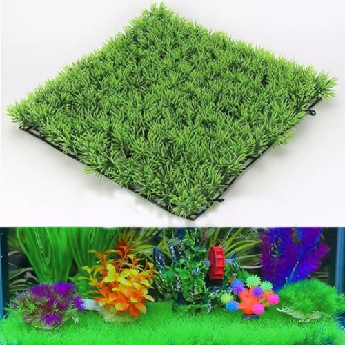 Aquarium Grass Mat,Plastic Square Artificial Lawn Turf Grass Mat,Aquarium Fake Decorations Grasses Fish Tank Landscape Ornament for Saltwater Freshwater Tropical Fish Tank,25x25cm