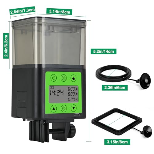 【320 ML LARGE CAPACITY & PRECISION FEEDING】:320 ml large capacity, larger than many other fish feeders, perfect for business trips or travelling to feed fish and turtles. Equipped with 3 sizes of outlet holes for small, medium and large portions of special feeds, allowing you to control the amount of food precisely to avoid waste and overfeeding.