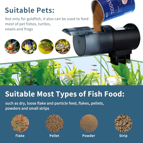 【Suitable for a variety of fish feed】— Suitable for a variety of fish and turtles, it can automatically put in a variety of feeds, including granules, flakes, granules, strips and other different specifications to meet your feeding needs.