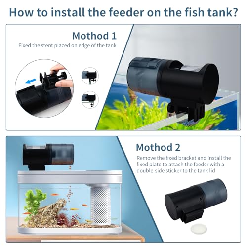 【Multi-Functional Installation Options】—The Podazz aquarium feeder comes with adjustable clamps and double-sided stickers, suitable for different types of fish tanks. It can be easily installed on the aquarium cover, condensation tray or glass edge, or can be pasted on the tank lid and completed in 2-3 minutes