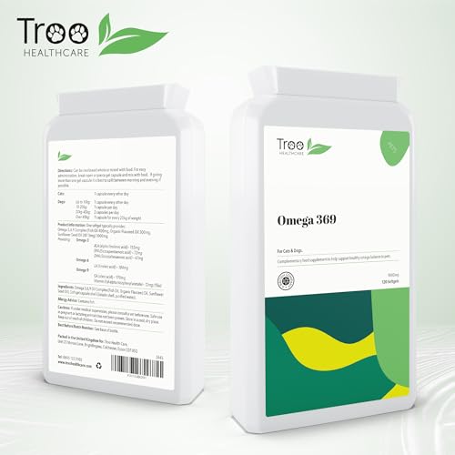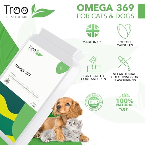 Troo Health Care Omega 369 Pet Perfect Omega Fish Oil – for Dogs & Cats – 1000mg 120 Capsules – Daily Omega 3 6 9 Supplement for Pets – Help Maintain Healthy Skin & Coat – Support Immune & Heart