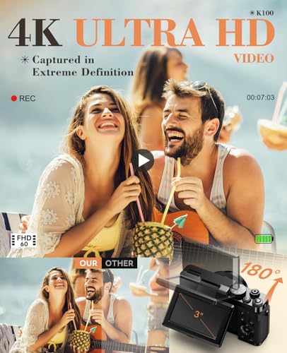 【48MP Digital Camera with Flip Screen】:The digital camera uses the latest CMOS measurement system to capture high-definition 4K videos and 48MP photos, without the need for complex manual settings, while automatically providing natural color images. Cameras for photography has a 3-inch screen and can rotate 180 degrees, allowing you to see what’s being recorded or view it while taking a vlog from any angle.