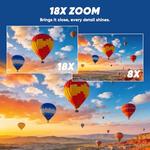 【18X Zoom & 270° Flip Screen】This digital camera lets you frame shots freely: 2.8-inch 270° flip screen (selfies/vlogging) and 18X zoom. Half-press to lock focus—ideal for cameras for photography and daily recording.