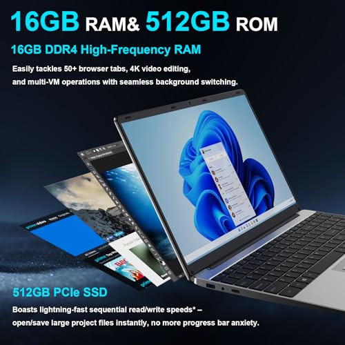 【16GB DDR4 RAM & 512GB SSD Storage】DMDFJY students laptops packed with 16GB DDR4 RAM ensures smooth switching between apps, browsers, and documents, while the 512GB SSD provides lightning-fast boot-ups and ample space for files, DMDFJY cheap laptop ideal computer for students managing projects or professionals editing large datasets.