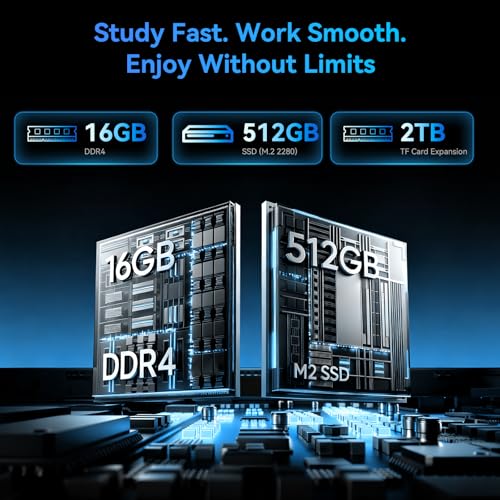 【💾 16GB RAM & 512GB Storage】 Blackview laptop is equipped with 16GB DDR4 RAM, running 50% faster than DDR3 devices, allowing you to efficiently handle multiple applications and tasks simultaneously without lag. The built-in 512GB M.2 high-speed SSD ensures smooth system operation and provides ample space for your personal files compared to standard 128GB/256GB drives. Need even more space? The storage can be easily expanded via a TF card (up to 2TB), allowing you to store all your digital treasures without ever worrying about running out of room.