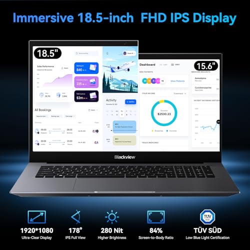 Blackview 18.5″ FHD Laptop, N150 Processor up to 3.6GHz, 16GB RAM Laptop with 512GB SSD, Full HD Display Laptops, Support WiFi 6, BT5.2, 3*USB3.2, Dual Speakers, 8000mAh Long-Lasting Battery