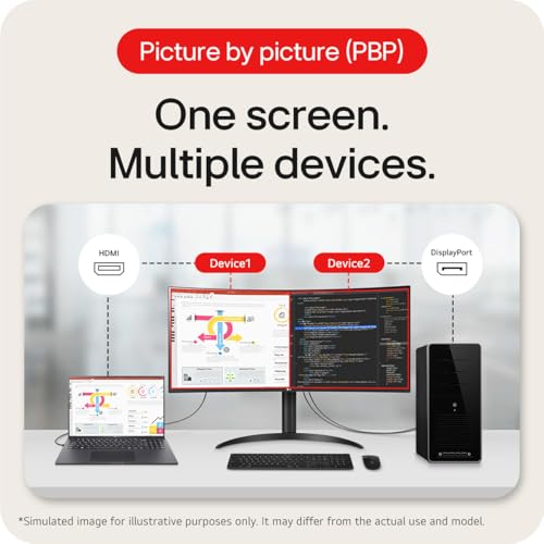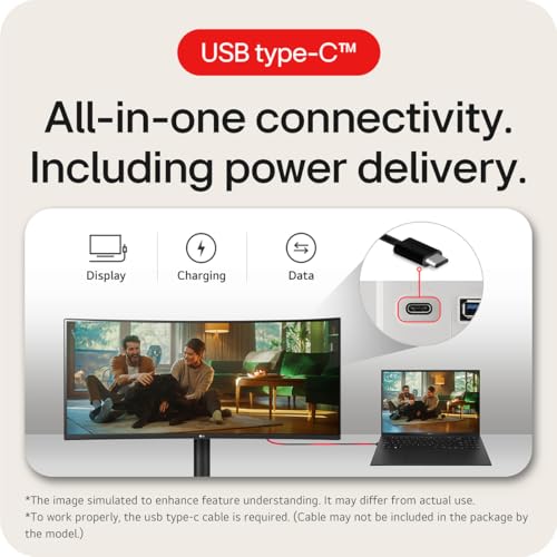 LG Electronics Curved UltraWide Monitor 34WR55QK, 34 inch, 1440p, 100Hz, 5ms Response Time, VA Panel, Smart Energy Saving, USB-C (65W Power Delivery), Displayport, HDMI