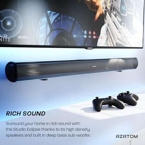 AZATOM Soundbar with Built-In Subwoofer | 180W Surround Sound | Bluetooth, Large Remote & Optical Cable Included | Home Theatre Audio System Perfect for Living Rooms and Bedrooms Studio Eclipse