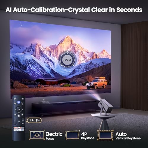 🔔【Native 1080P+4K Supported+30000Lumen】Smart projector has full hd 1080P resolution and 4K video decoding. Its intelligent AI image optimization system automatically matches color gamut schemes and simulates up to 98% of the NTSC cinematic-wide color gamut. Providing natural light and dark filtering and vivid contrast, enhancing the realism and vividness of each scene.S29 tv projectors perfect for home cinema, gaming setups, or outdoor movie nights.(4K support implies 1080P display of 4K content)
