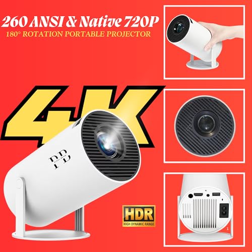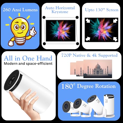 Seamless Screen Mirroring: Wirelessly mirror your phone, tablet, or laptop to this powerful smartphone projector. No cables, no fuss – just instant sharing with the sleek, modern mini projector 4k+ wifi bluetooth.